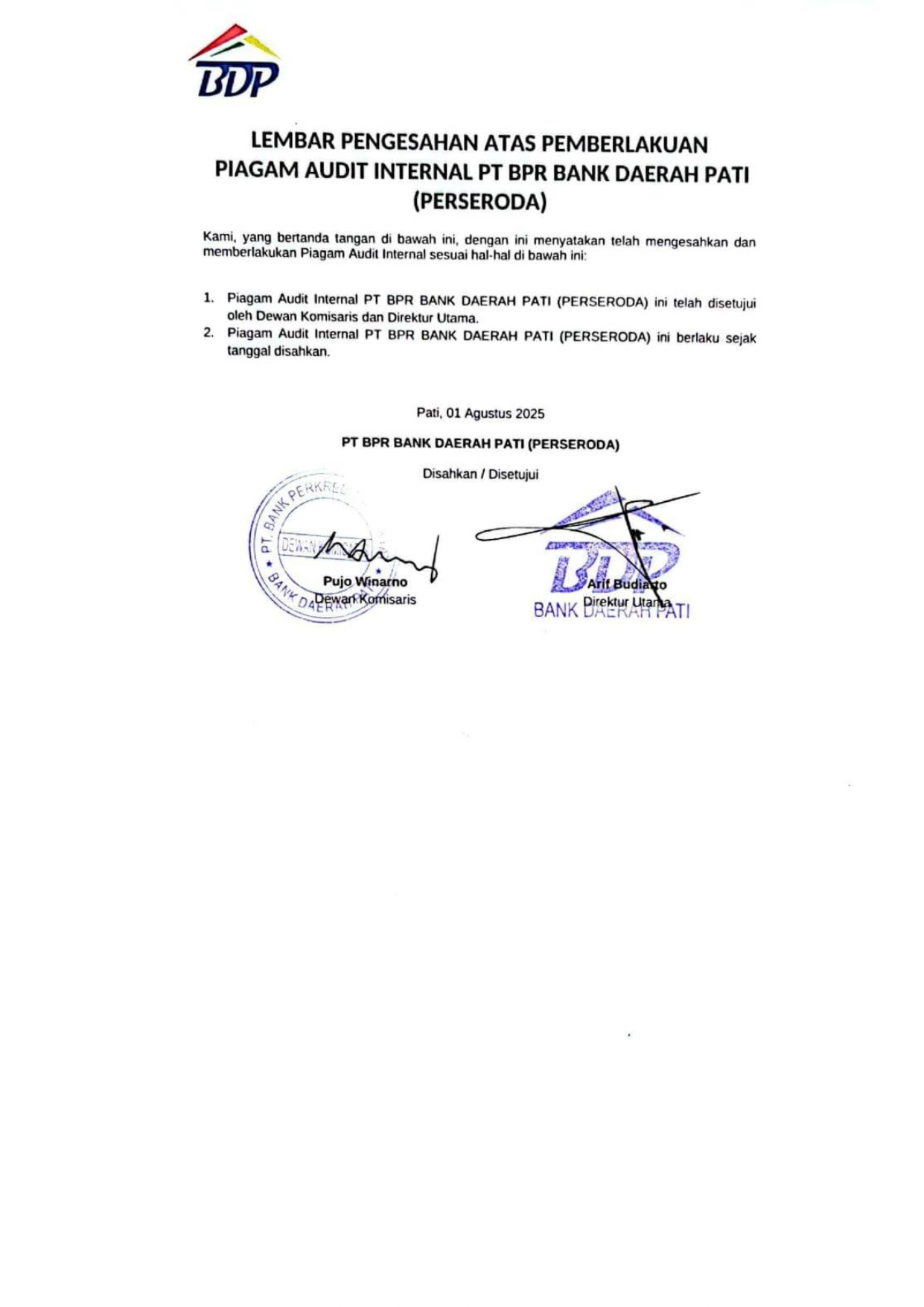 Terima kasih atas kepercayaan anda telah memilih PT. BPR Bank Daerah Pati (Perseroda) sebagai mitra utama jasa keuangan Anda.